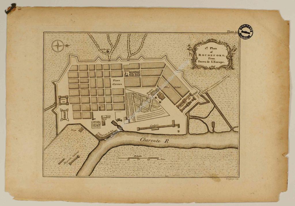René Gabriel de Rabié was born on 14 June 1717 in Rochefort, France, to the merchant Gabriel Rabié and his wife Marguerite Moine [also Moinne or Moyne]. Rochefort was established by Louis XIV as an arsenal and shipyard for the French Navy. Construction of the Arsenal began in 1666, and the town was laid out “en damier” or in a checkerboard pattern, surrounded by ramparts. “La Corderie” or Rope Walk, where ropes were manufactured for the navy, was constructed between 1666 and 1669, and at 374 metres in length, was one of the longest buildings in Europe at the time.