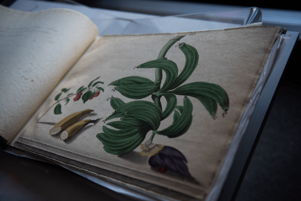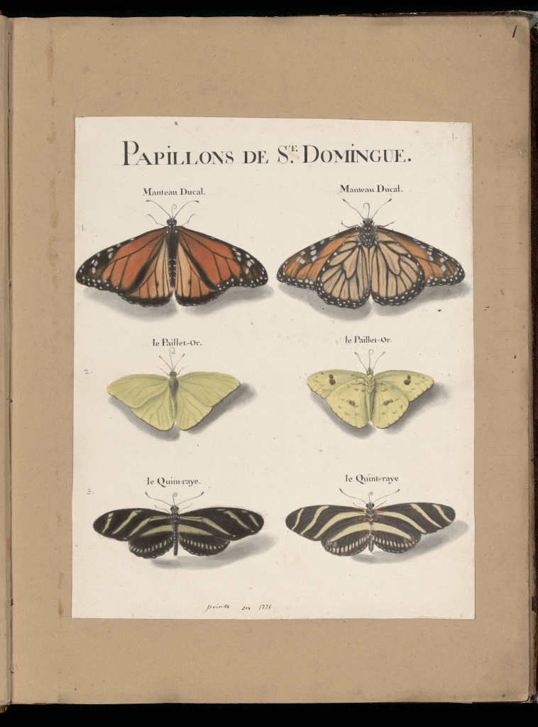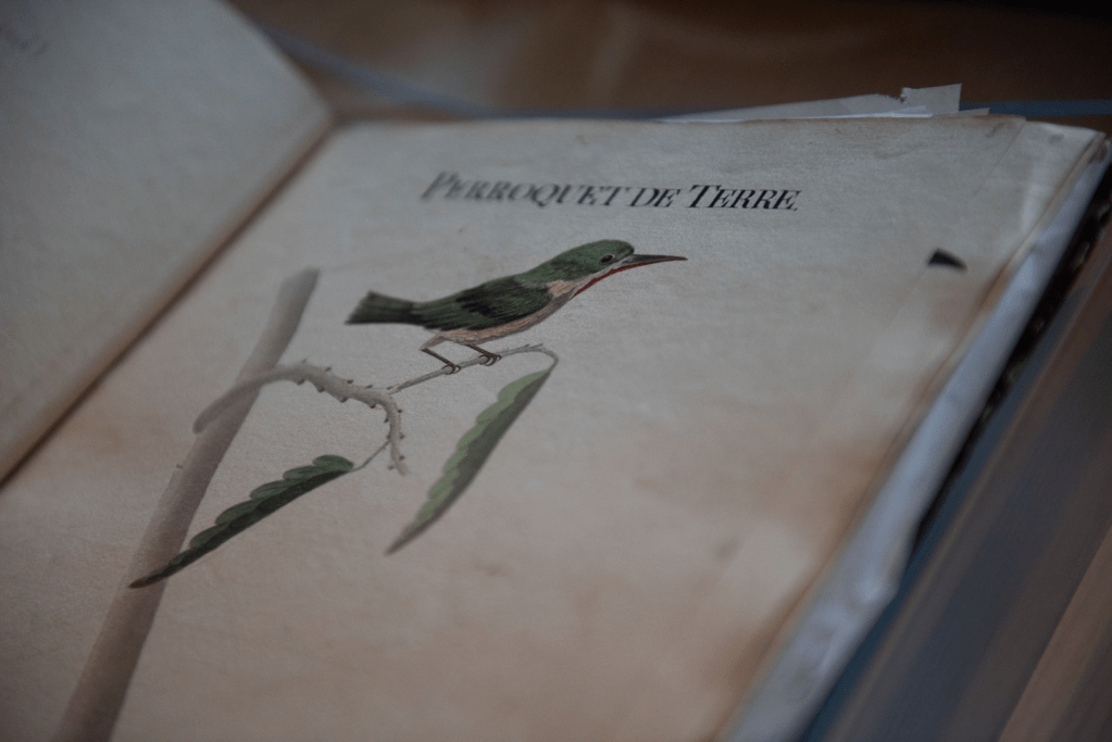 Towards the end of Clovis-Alexandre’s visit, the conversation surrounding de Rabié’s collection circled back to the centrality of sugar on Saint-Domingue, and to the wider world at the time. Clovis-Alexandre noted that one-third of Europe’s sugar at the time came from Saint-Domingue, with everything from French confectionary goods to people in Saint Petersburg using the product in their coffee. Along with the economic prosperity and luxury goods Saint-Domingue bestowed on Europe, these same processes marked unparalleled damage on the environment and enslaved bodies. The ongoing effects from colonial clear-cutting and soil degradation continue to impact the island’s ecology, and many of the species de Rabié illustrated face mass habitat loss outside of reserves.