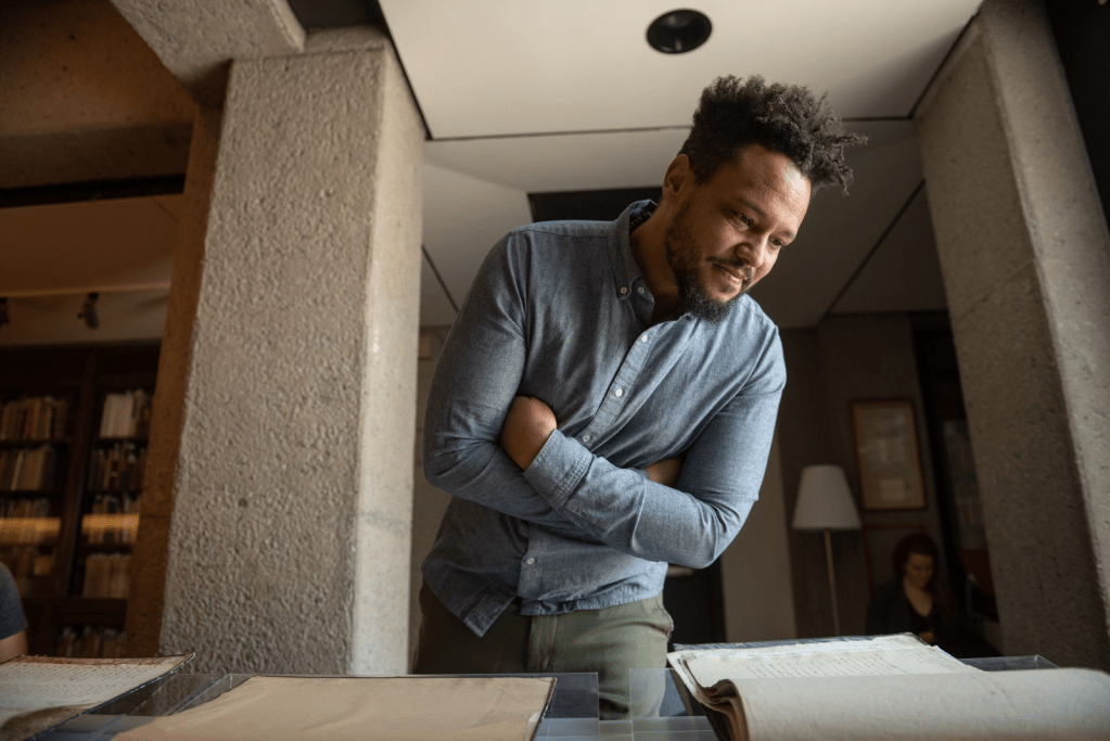 Haitian artist Clovis-Alexandre Desvarieux visited McGill University Library in December 2023 as part of an ongoing collaborative effort between the Hidden Hands group and local artists. Clovis’ own work grapples with notions of the sacred, drawing heavily on Haitian mythological and environmental concepts to display and problematize ideas of progress and balance.